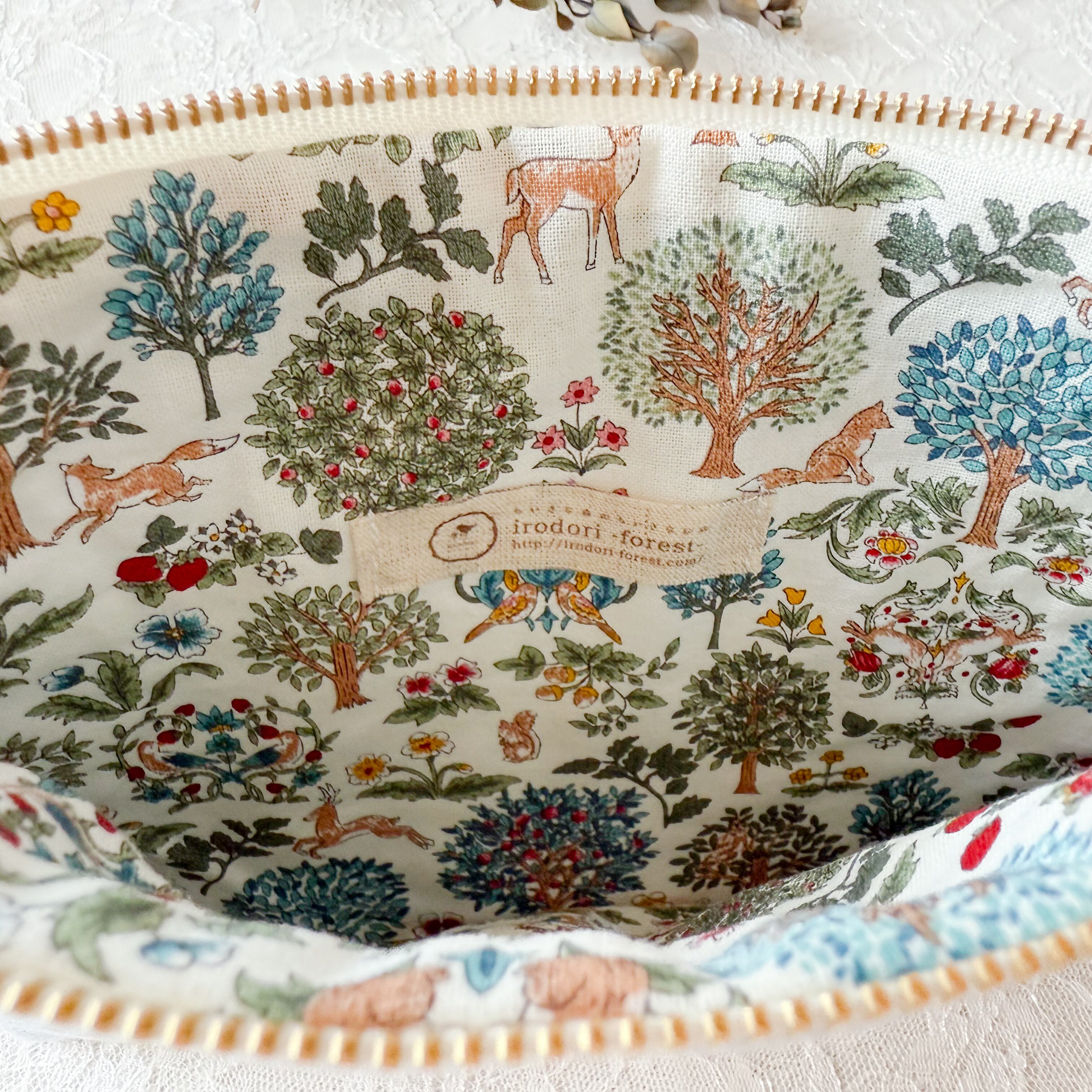 バスケットとお揃いのデザインを使った、フラットタイプのファスナーポーチが誕生しました❁