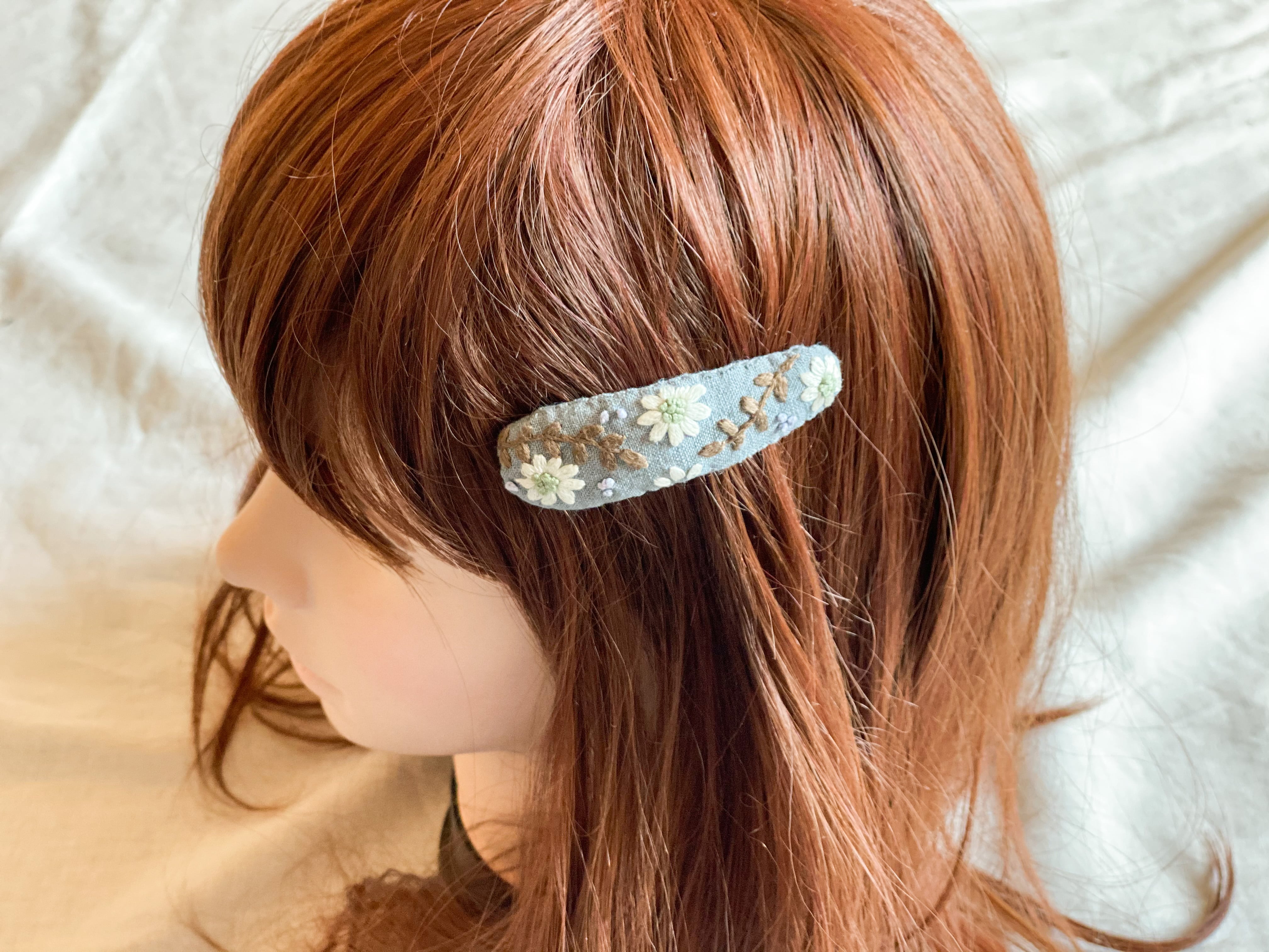 刺繍 手刺繍 スリーピン ぱっちんどめ ヘアアクセサリー ヘアアレンジ リンクコーデ ナチュラル ボタニカル 花 ご褒美 プレゼント