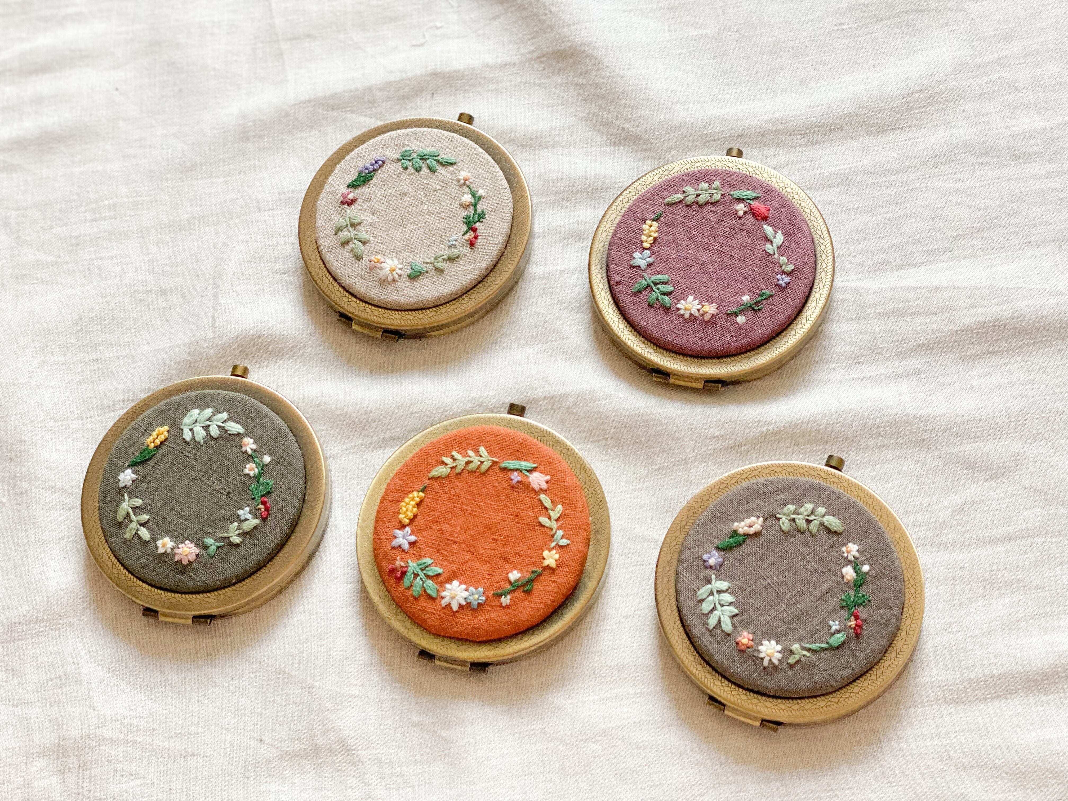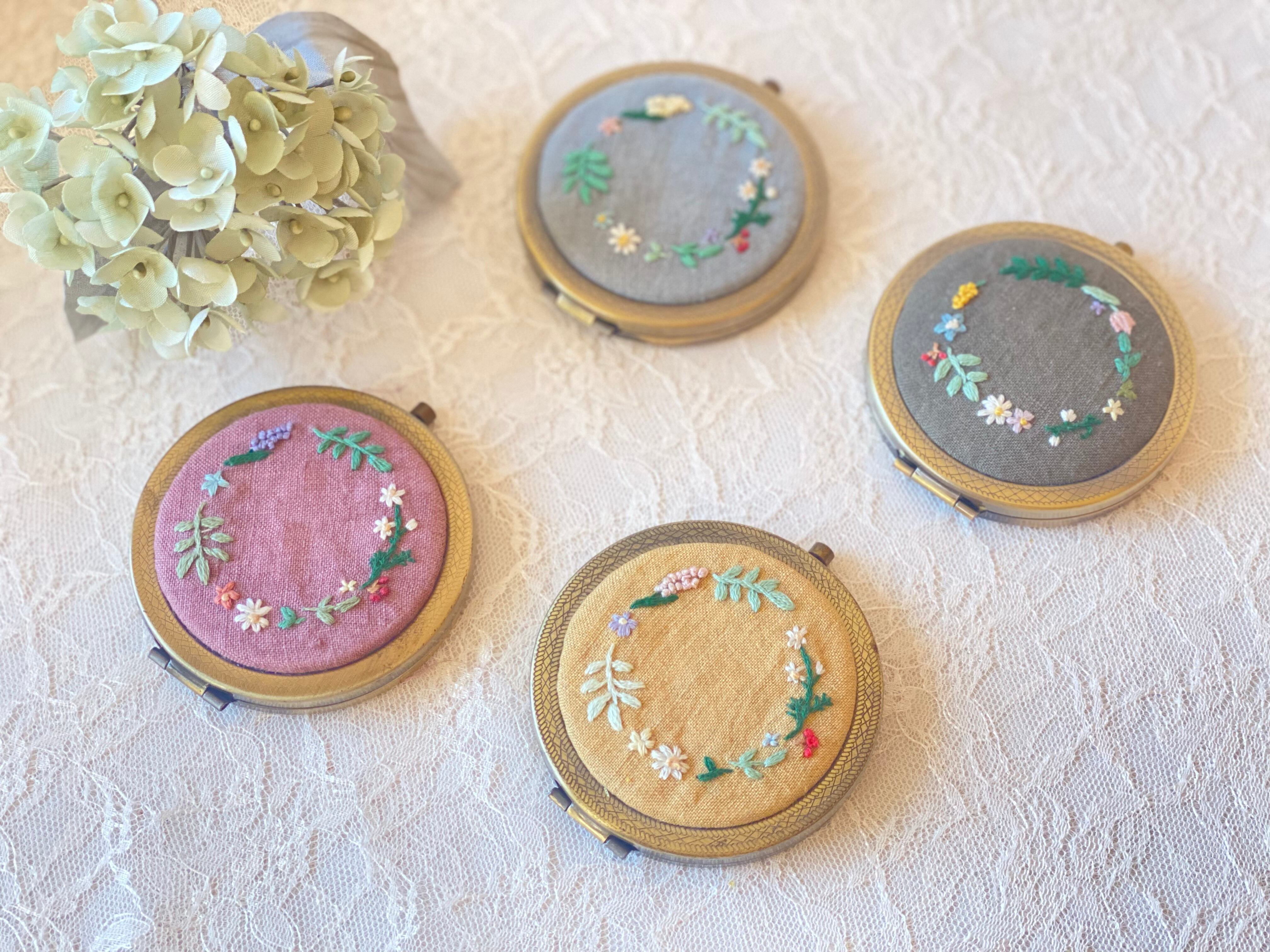 コンパクトミラー 手鏡 ナチュラル ボタニカル 花 ご褒美 プレゼント オーダー カスタムオーダー 受注制作 身だしなみ ハンドメイド小物 刺繍 手刺繍