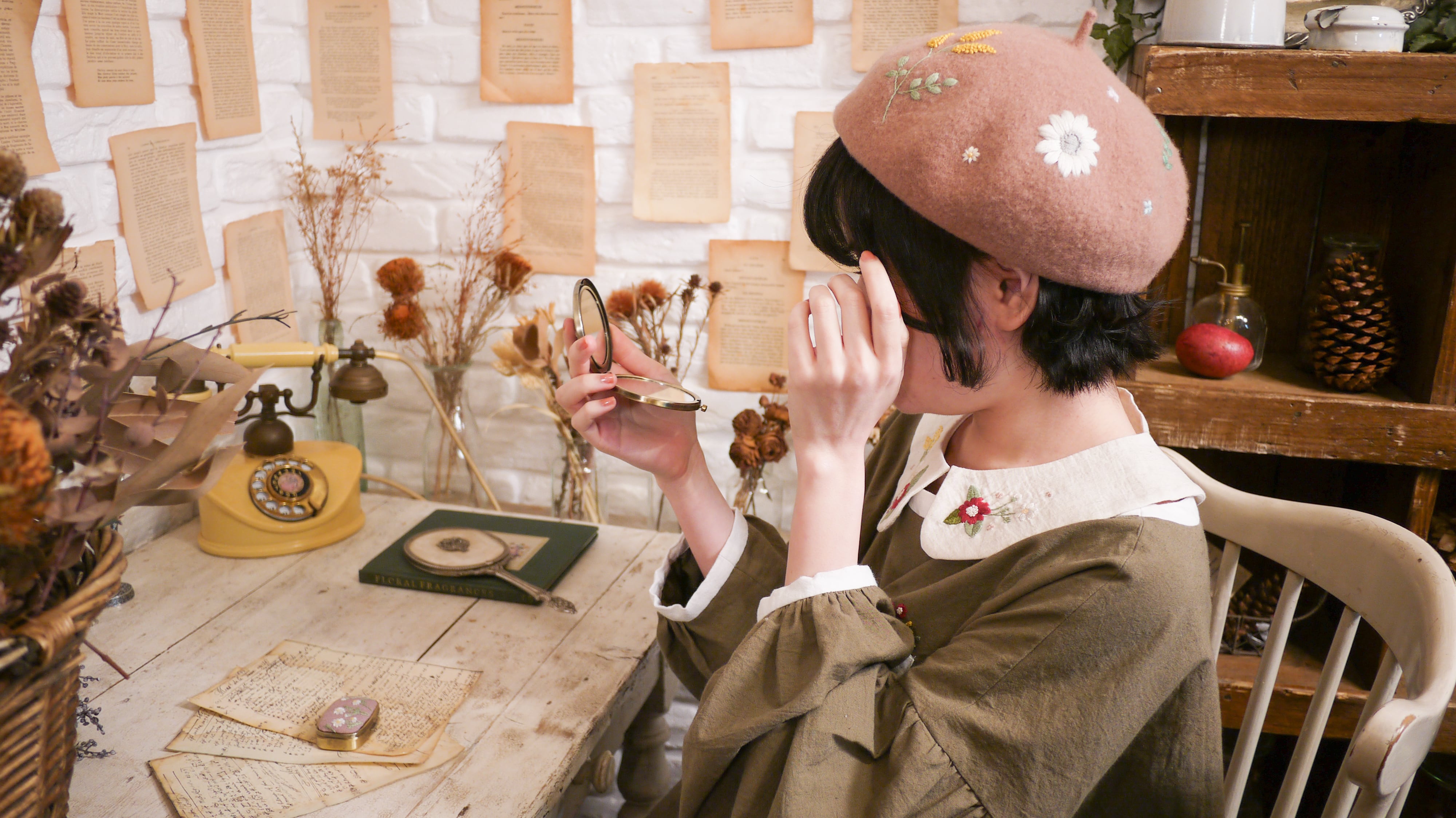 素材:リネン(ベルギーリネン100%)・刺繍糸・糸・真鍮・鏡・接着剤