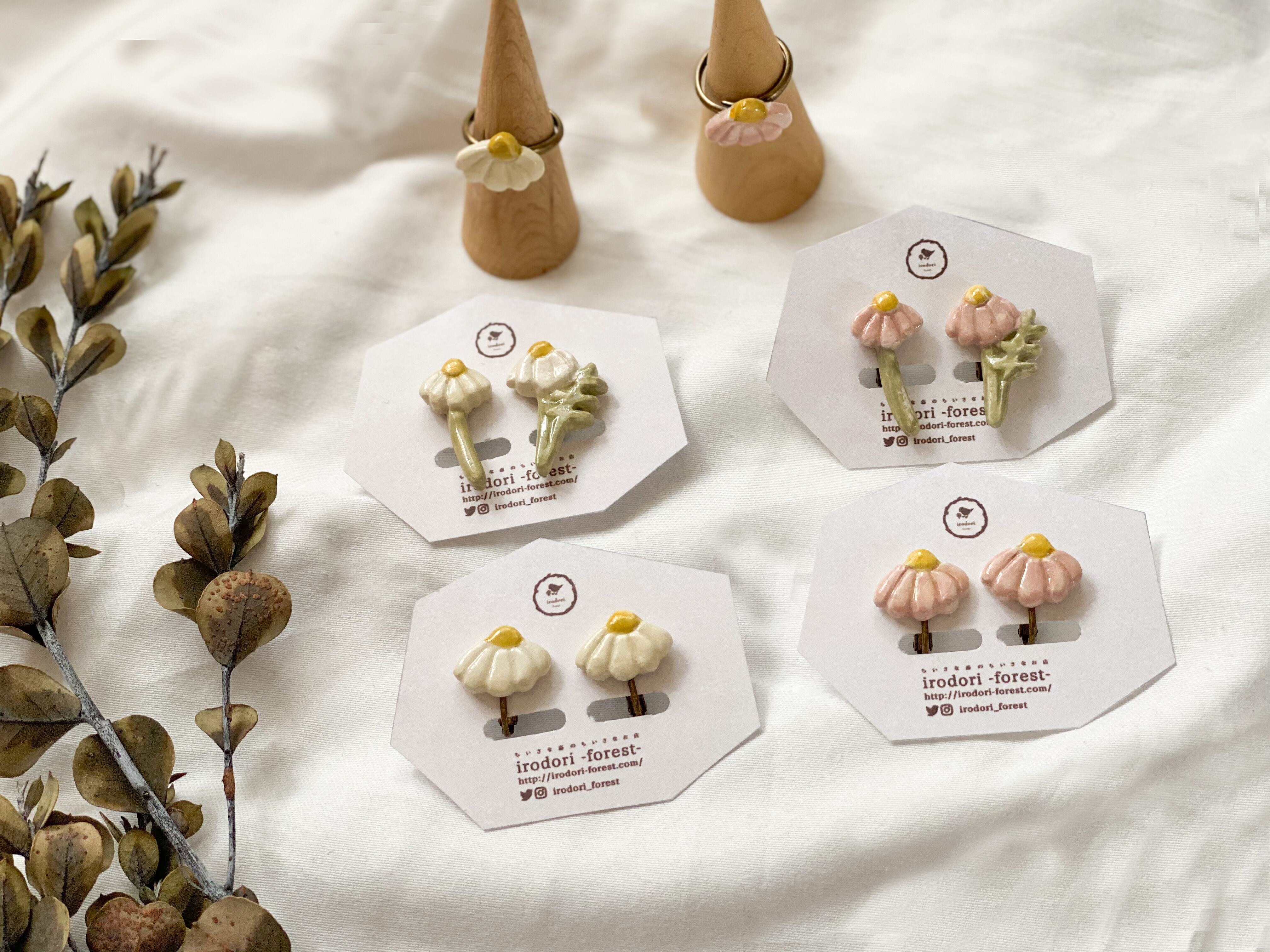 粘土 石塑粘土 耳飾り イヤリング ピアス ヘアアレンジ リンクコーデ ナチュラル ボタニカル 花 ご褒美 プレゼント