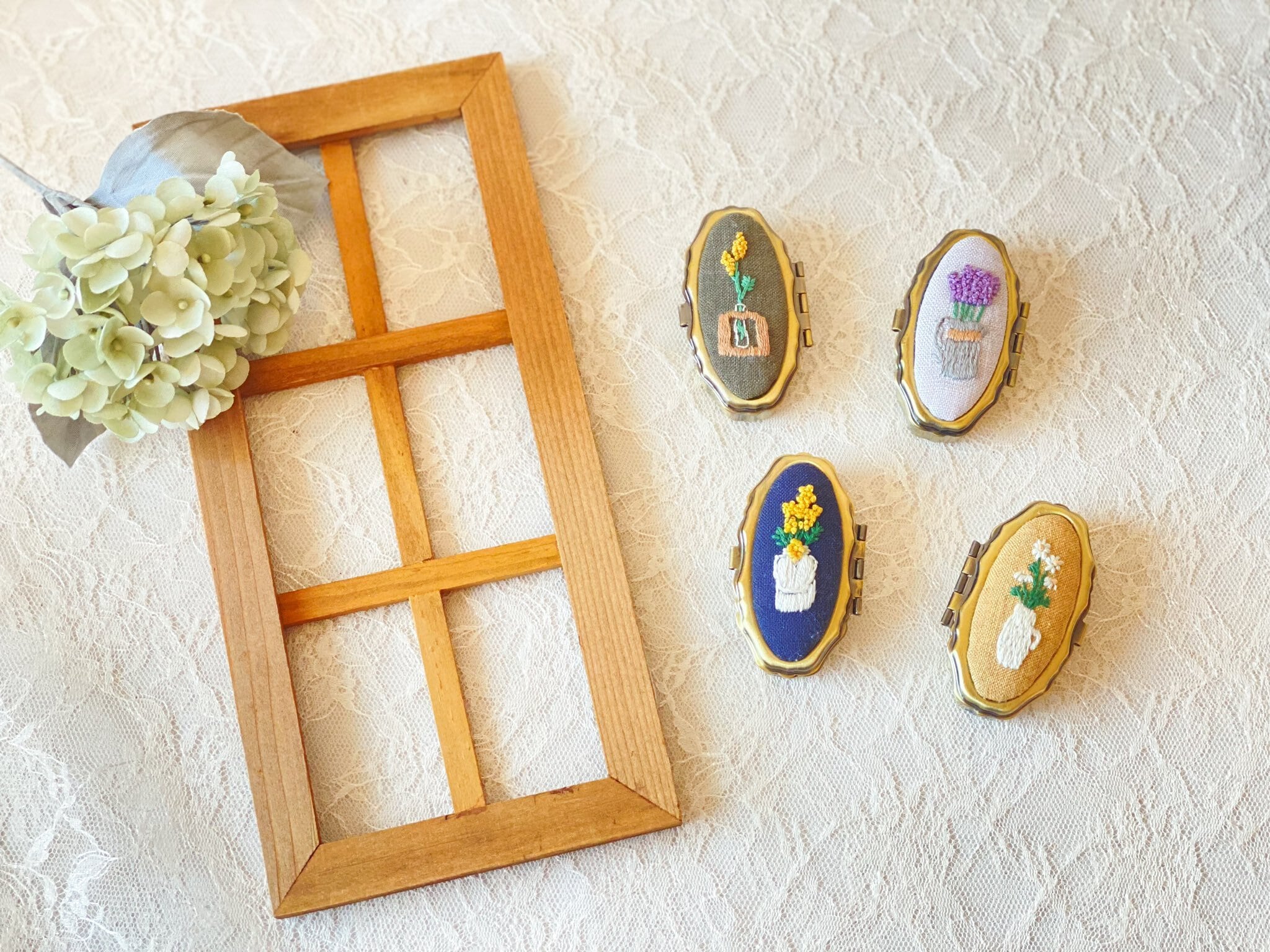 刺繍 手刺繍 小物入れ ピルケース ハンドメイド雑貨 リンクコーデ ナチュラル ボタニカル 花 ご褒美 プレゼント ボタニカル刺繍