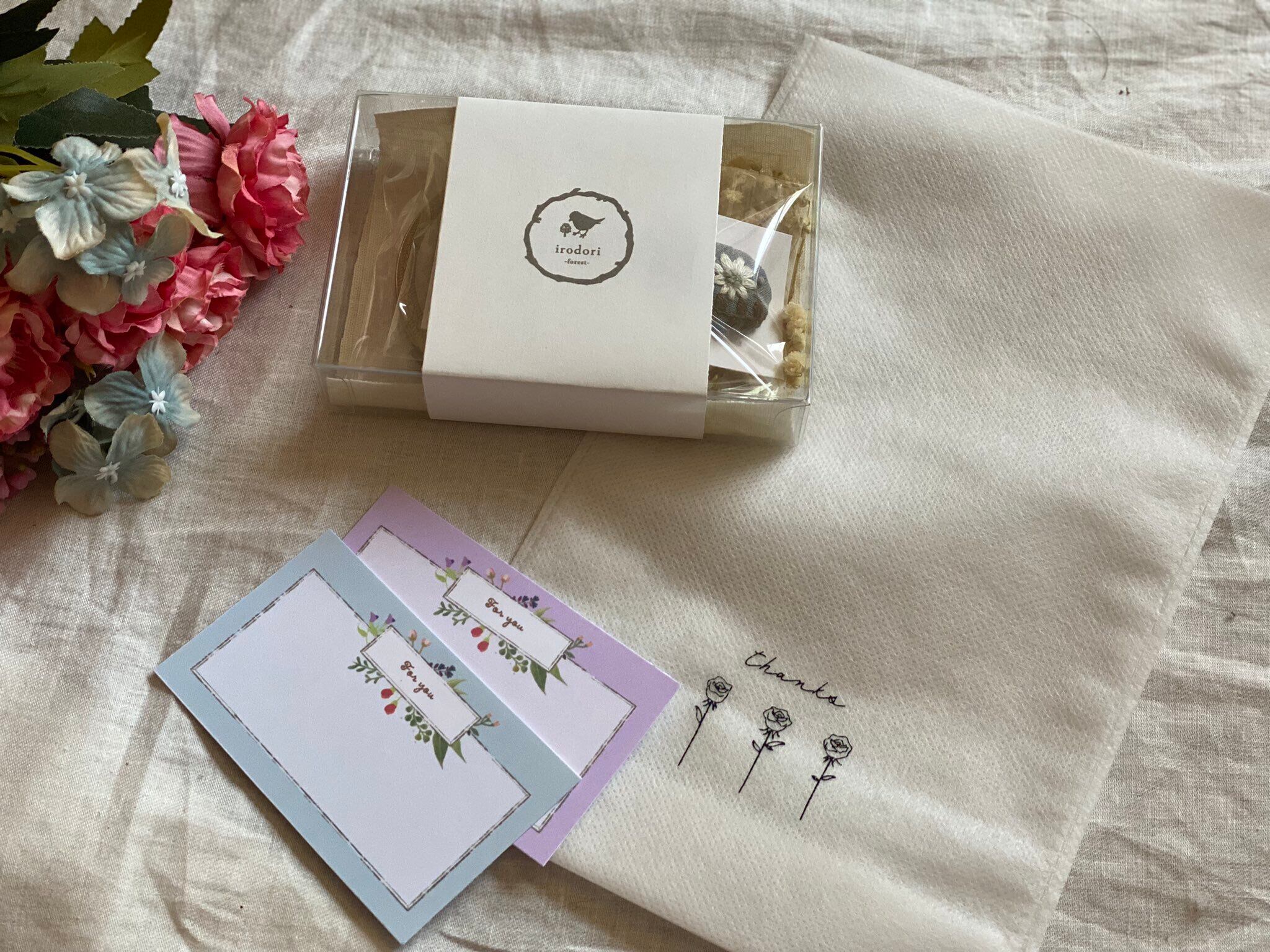 (作品と同系統のお色やクラフト紙をお選びしています)