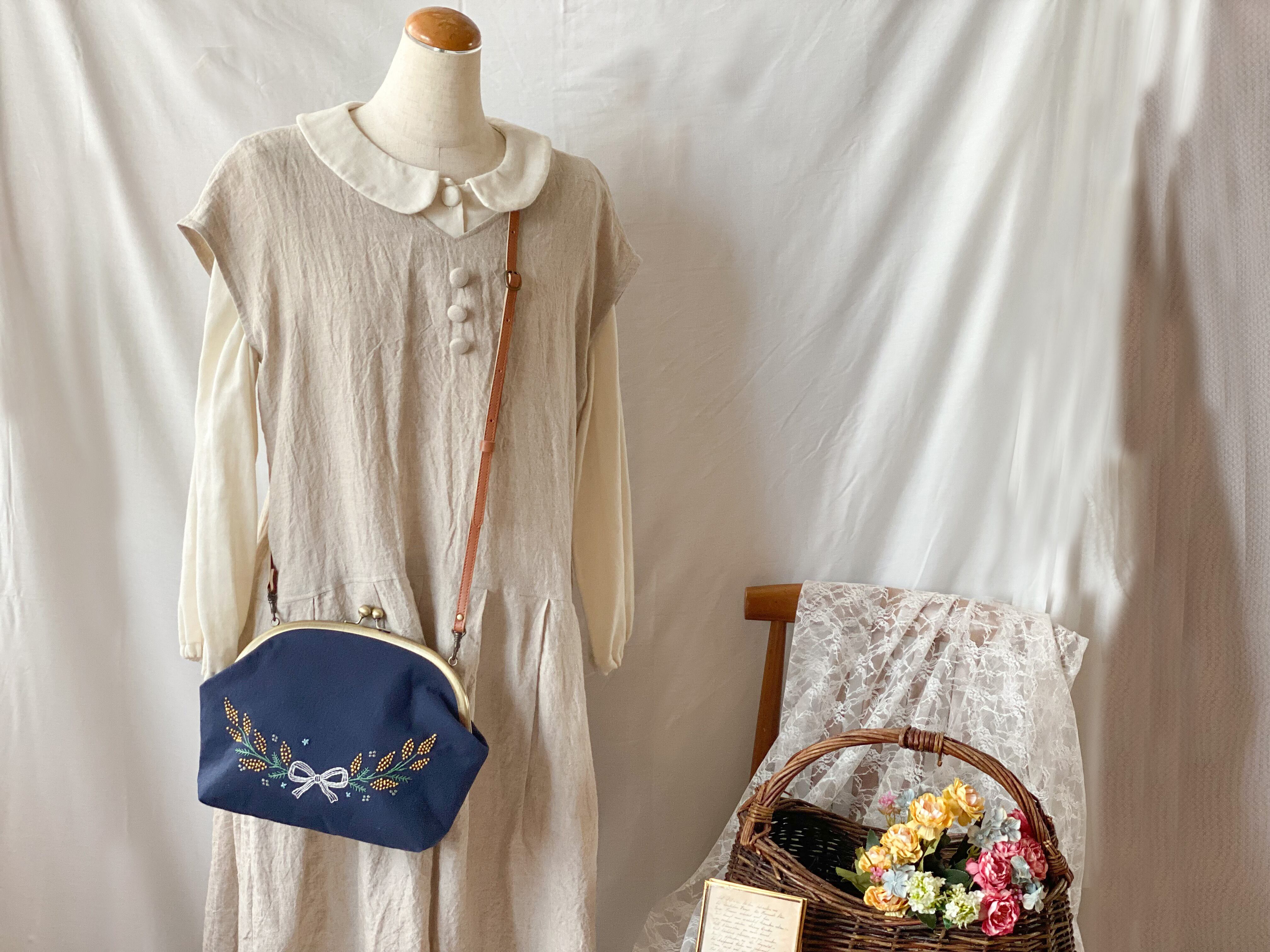 バッグ ショルダーバッグ がま口 ななめ掛け ナチュラル ボタニカル 花 ミモザ ご褒美 プレゼント オーダー 受注制作