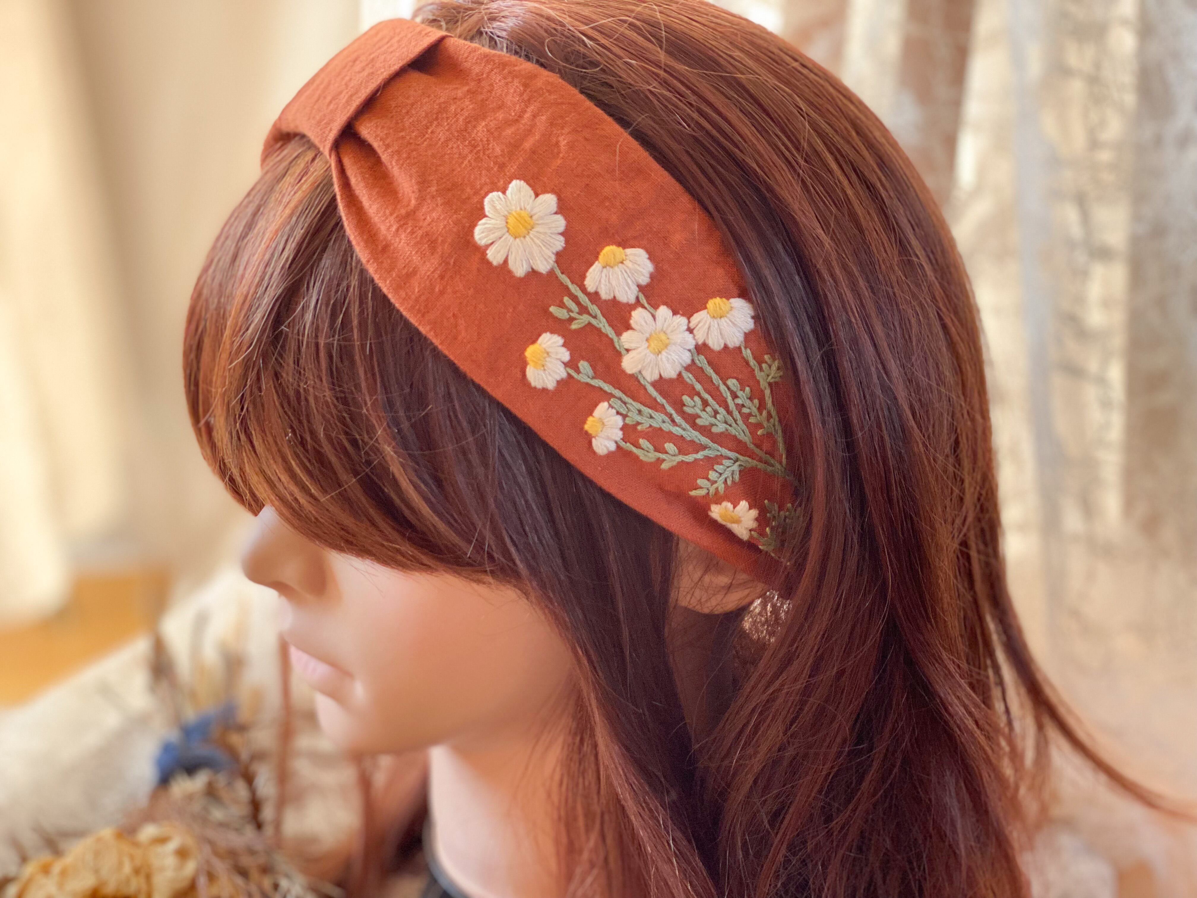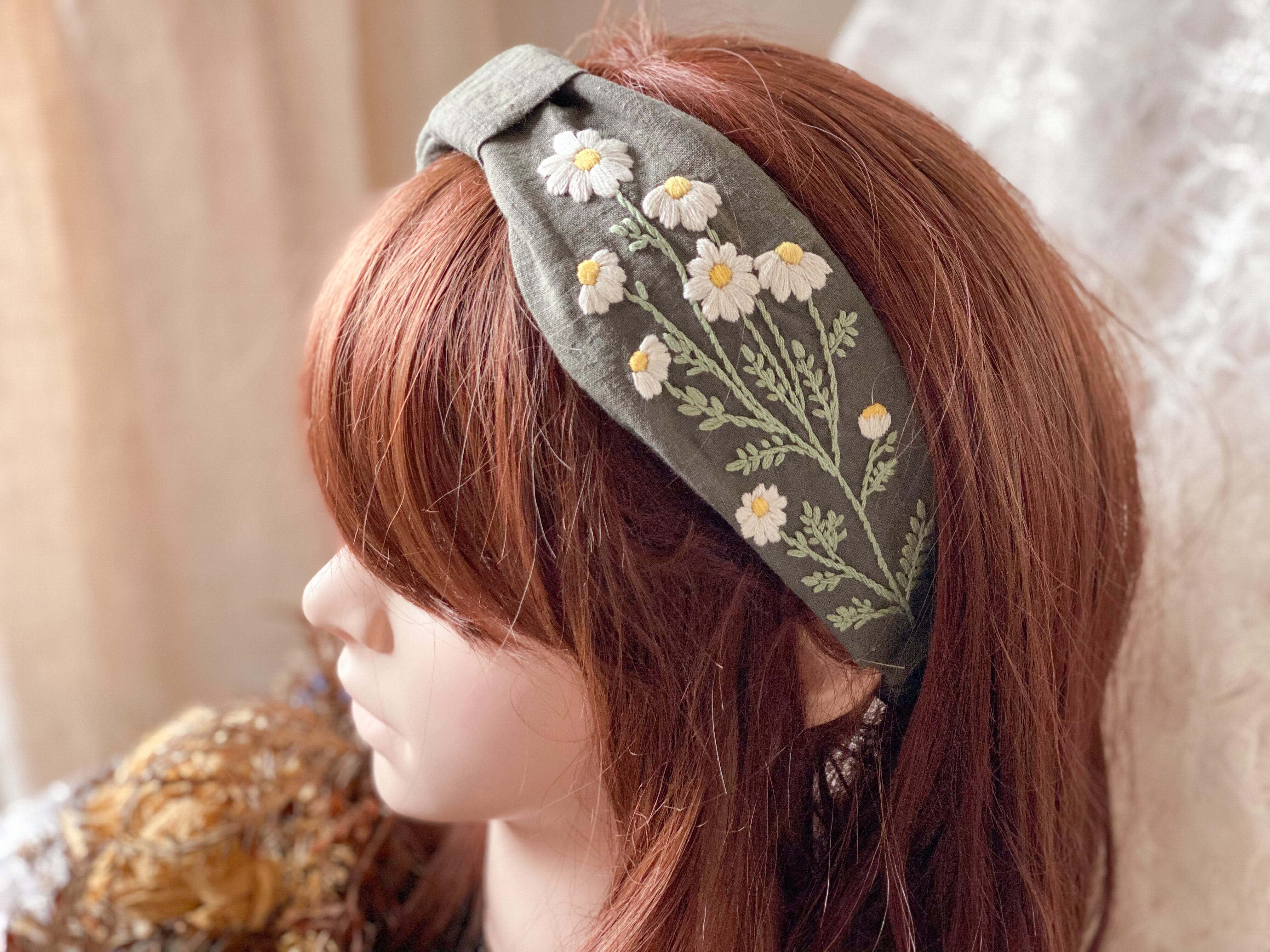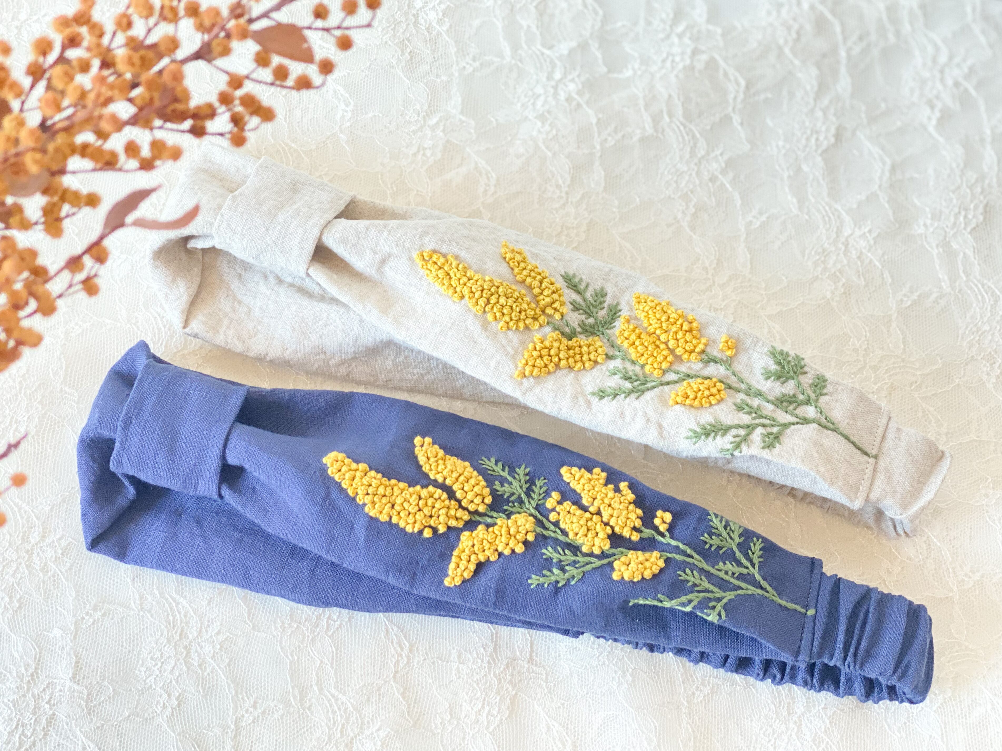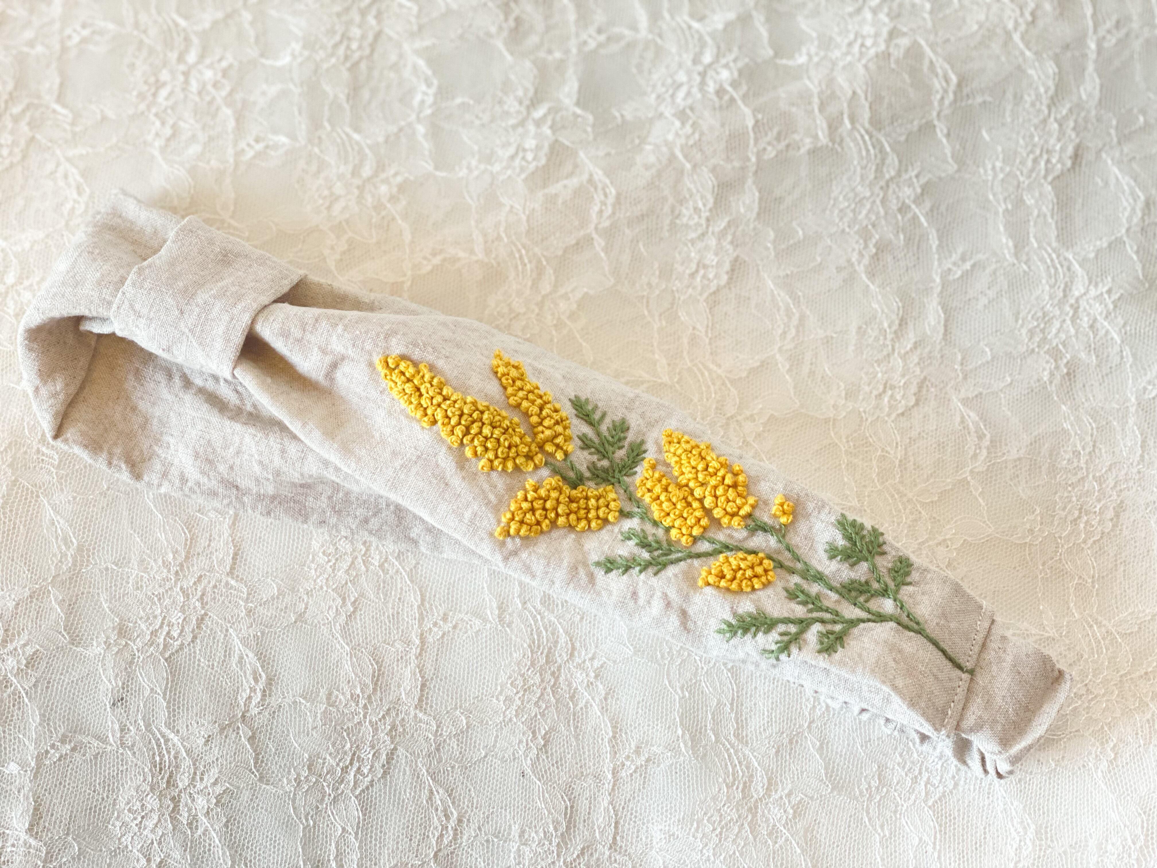 カチューム ヘアバンド ヘアターバン ヘアアクセサリー ヘアアレンジ 刺繍 手刺繍 ミモザ ナチュラル ボタニカル 花 ご褒美 プレゼント オーダー カスタムオーダー 受注制作